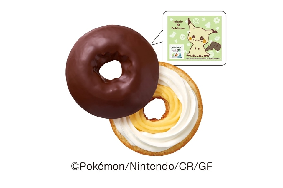 しっとり食感のケーキドーナツ生地にチョコレートをコーティングして、カスタードクリームとホイップクリームをサンドした。ミミッキュがデザインされたスリーブに入っている。
