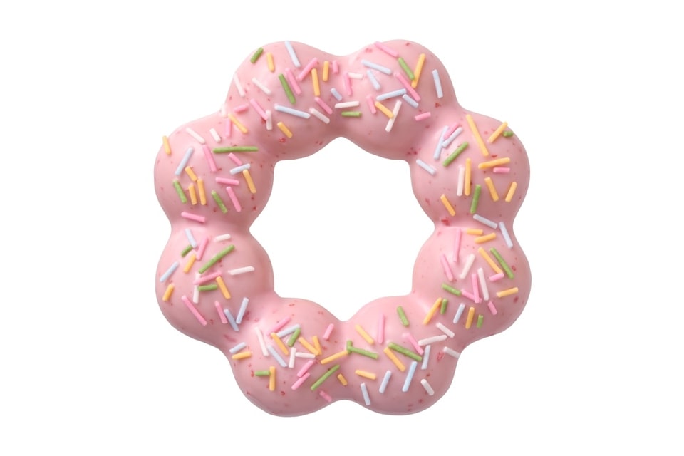 しっとり食感のケーキドーナツ生地にホワイトチョコとストロベリーチョコをコーティングしストロベリーシュガーをトッピングした。ふんわり食感のホイップクリーム入りのシュー生地にホワイトチョコをコーティングして目と口をチョコレートで表現している。