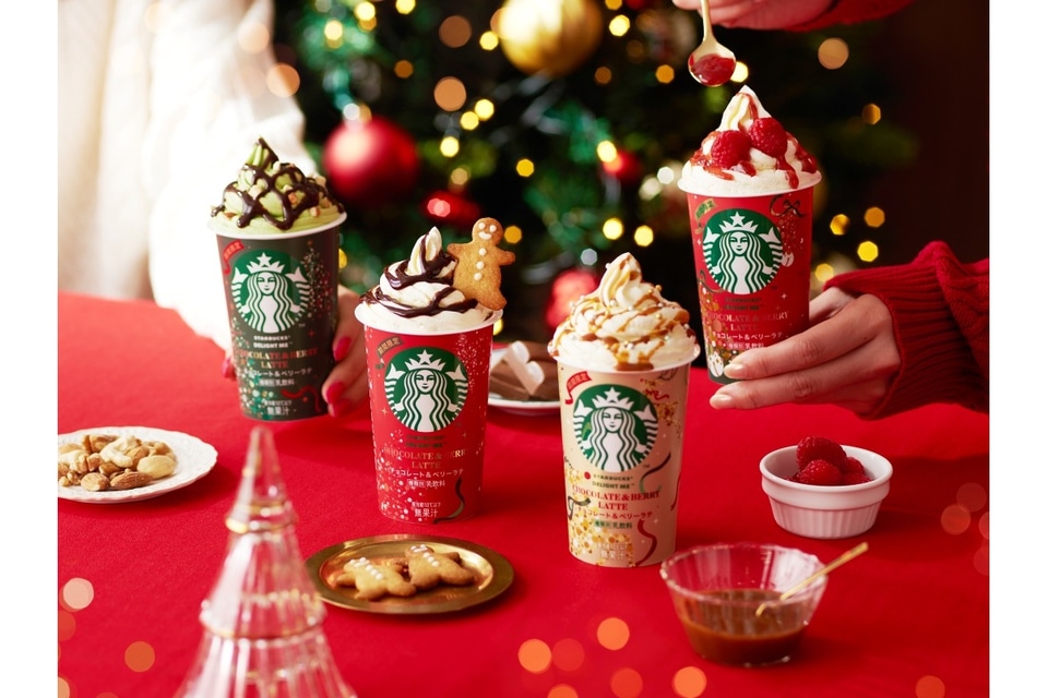 「スターバックス DELIGHT ME チョコレート&ベリーラテ」を発売。イルミネーションをイメージした4種のパッケージ