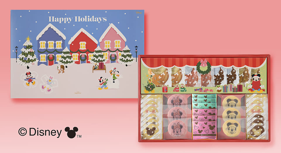 内容: ツリー形ボックスにサンタクロースに扮した「ミッキーマウス」や「ミニーマウス」達がデザインされている。中はミッキーアイコン柄クッキーの詰め合わせ。