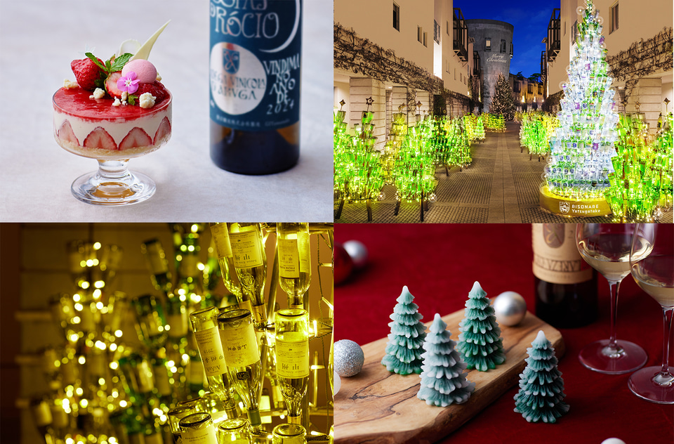 リゾナーレ八ヶ岳(星野リゾート)は、ワインボトル1万2千本をアップサイクルしたワインボトルツリーが輝く「ワインリゾートクリスマス2025」を12月1日~25日の期間に実施する。