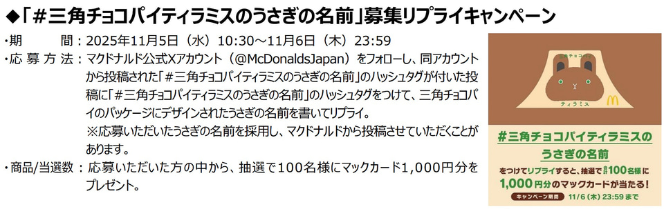 日本マクドナルドは秋冬の定番スイーツ「三角チョコパイ」から「三角チョコパイ ティラミス」を11月5日に発売する。