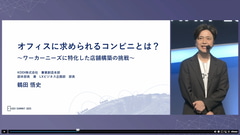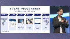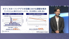 続いて、KDDI 事業創造本部 副本部長の鶴田悟史氏が登壇し、「オフィスに求められるコンビニとは?」と題して、講演が行なわれた。KDDIではローソンが掲げる「Real×Tech LAWSON」を体現する場所として、高輪にローソンを2店舗オープンしているが、鶴田氏は社員専用のコンビニについて、解説した。