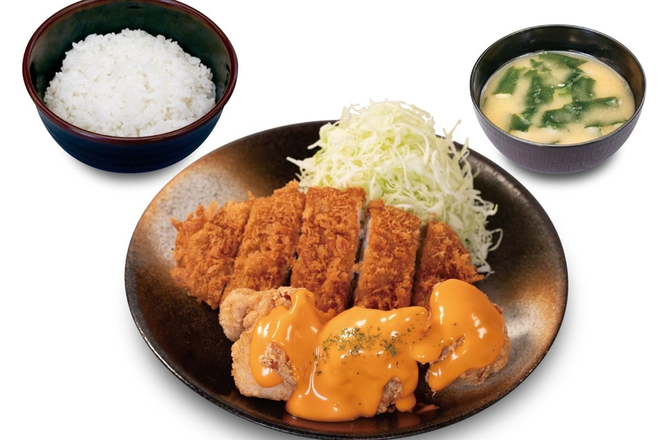 パリッとジューシーな本格唐揚げに、唐辛子とマヨネーズを合わせた「コチュマヨソース」を絡め、“旨×辛”でクセになる味わいに仕上げている。マイルドな辛さとボリューム満点の定食で満足度も高い。また、「ロースかつ」と「コチュマヨ唐揚げ」の盛り合わせ定食も用意している。