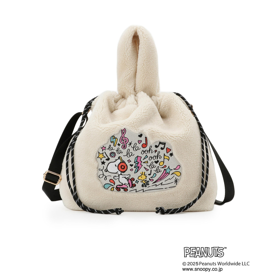 これからの季節にぴったりのもこもこボア素材を使ったスクエアトートと、巾着トートで、スヌーピーやウッドストック、チャーリー・ブラウンたちをデザインした各4種を展開する。