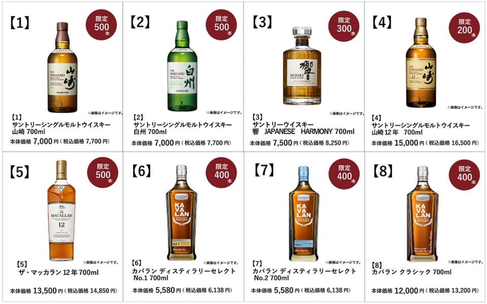 イオンは東京・神奈川・千葉・山梨のイオン・イオンスタイル限定で「ウイスキー抽選販売」の受付を開始した。
