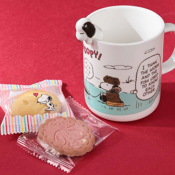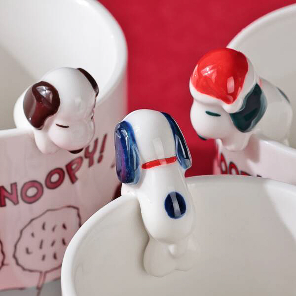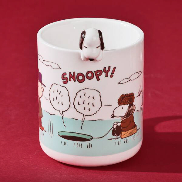 カップのふちの“スヌーピー”がかわいい陶器製のマグカップ。デザインは「フレンズ」「スノーマン」「釣り」の3種でいずれも価格は1397円。