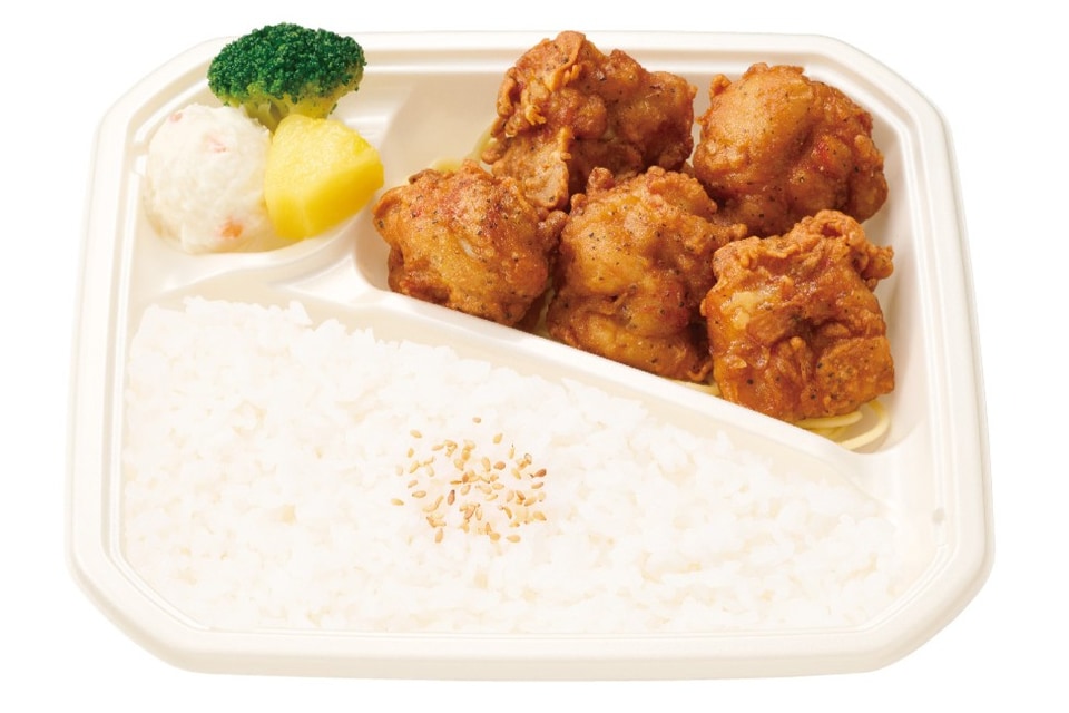 リュウジ氏のレシピを元に、リュウジ氏と、当社商品開発チームがともに試食・ディスカッションを重ねて誕生した、コラボ限定の唐揚。ブラックペッパー、しょうが等のスパイスをブレンドしたオリジナルの唐揚粉を使用。ガツンとパンチが効いたスパイシーな味わい。副菜には、箸休めとして唐揚がさらにおいしく食べられるよう、甘酸っぱいパイナップルをトッピングしている。