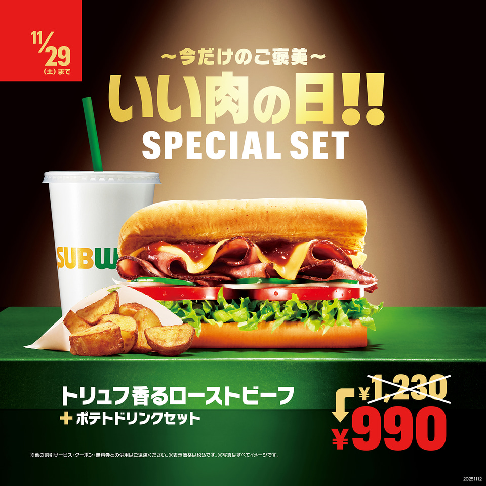 サブウェイ(WATAMI FAST CASUAL MANAGEMENT)は、「トリュフ香るローストビーフ」「3種のきのこ香るグリルチキンチーズ」を期間限定で11月12日に発売する。また、「トリュフ香るローストビーフ」のポテトドリンクセットを240円引きで販売するキャンペーンも実施する。