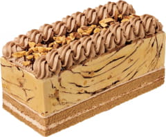 中心部にミルクチョコレートとチョコチップの食感を楽しめる「チョップドチョコレート」、サイドに2種類のココアを使ったコク深い「チョコレート」と、2種類のフレーバーを初めて使用した。さらにアイスクリームに合わせて開発した、しっとりとしたチョコレートケーキを重ね、アイスクリームとケーキを一緒に味わえる。