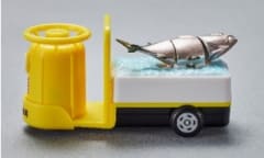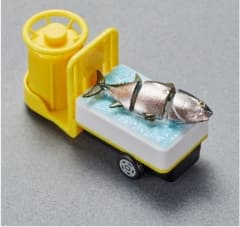 第1弾の新鮮な“いか”を運ぶトラックに続き、氷を入れた発泡スチロールケースに、車輪が動くとぴちぴちと上下に躍動するギミックの“まぐろ”を乗せ、市場を走る運搬車「ターレー(ぴちぴち動くまぐろ)」が登場する。