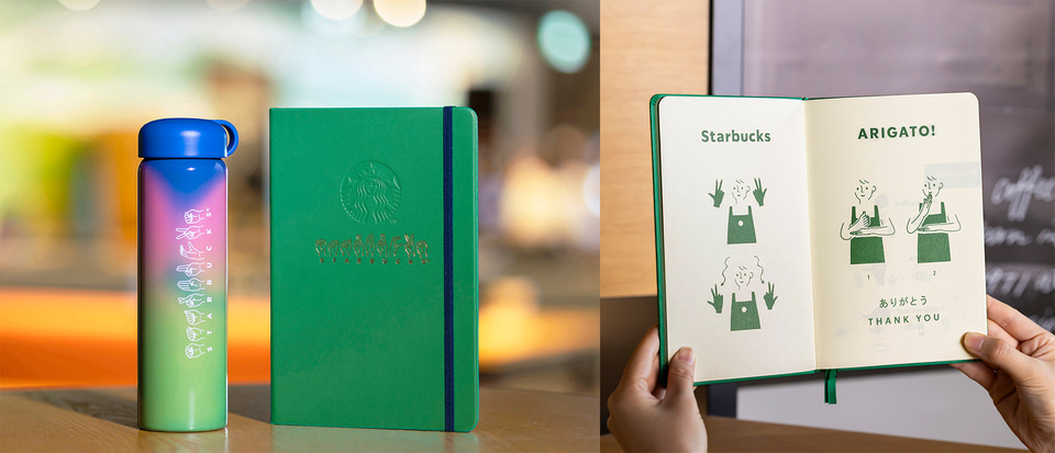 スターバックス「色が変わるステンレスボトル」「手話解説入りジャーナルブック」を発売。サイニングパートナーと開発