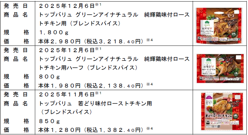 イオン、クリスマスの準備にうれし袋のままオーブンで手軽に焼ける「トップバリュ グリーンアイナチュラル 純輝鶏味付ローストチキン用」など発売