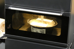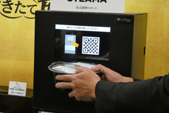 利用手順としては、容器の側面にある2次元コードを専用マシンに読み取らせると、マシン内の洗浄が始まり、30秒ほどで終了する。その後、フィルムを剥がさずにマシンにセットし、スタートボタンを押すと、90秒ほどで調理が完了する。あとは取り出してフィルムを剥がし、できたてを食べるだけだ。