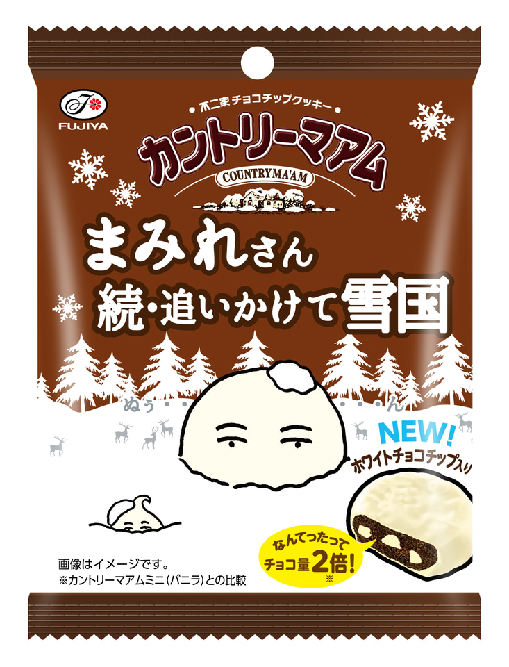 不二家は「カントリーマアムまみれさん続・追いかけて雪国ミドルパック」を11月18日に全国で発売する。また、コンビニではミニパックとして「カントリーマアムまみれさん続・追いかけて雪国」を11月11日に発売する。内容量はミドルパック標準11枚入り112g(個装紙込み)で、ミニパックは48g。