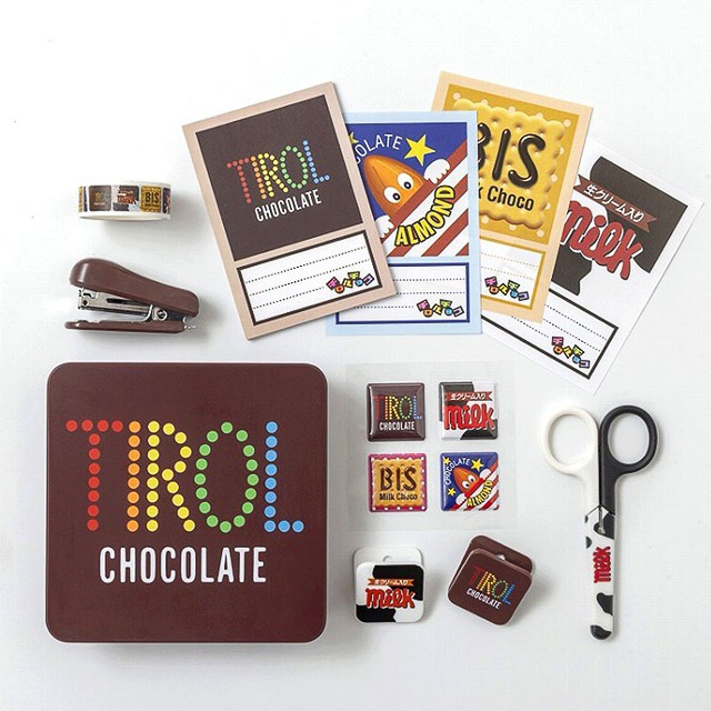 宝島社「チロルチョコ」デザインの缶にマステ・クリップ・ハサミなど入った「ステーショナリーセット」発売