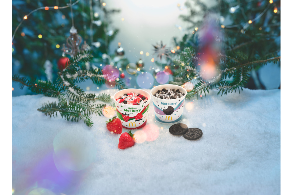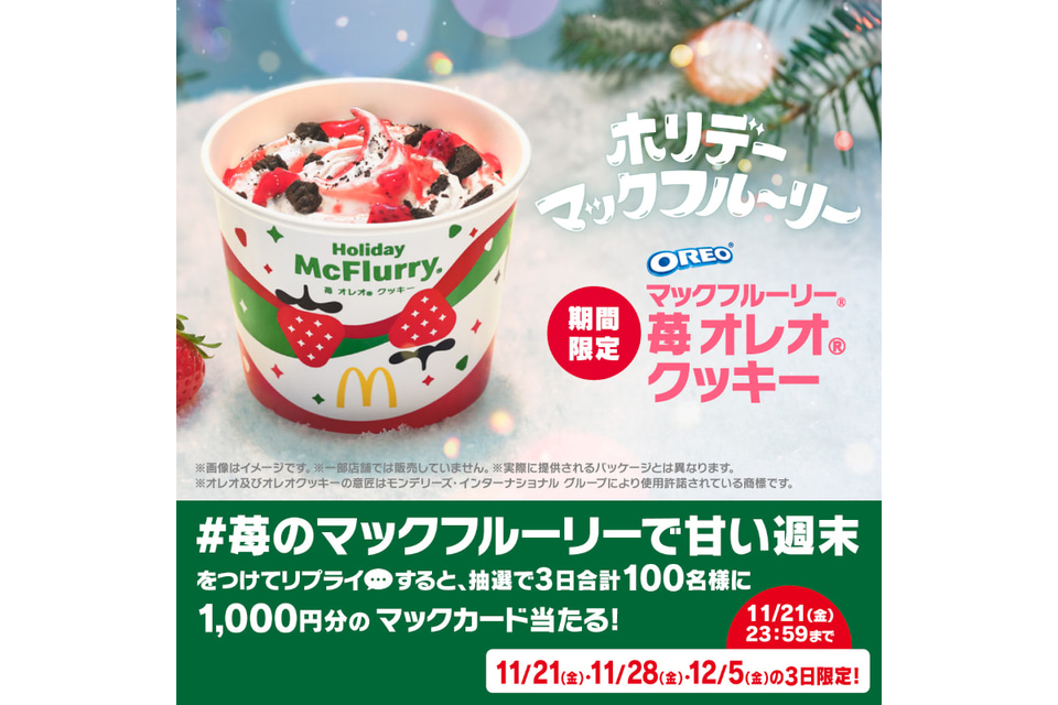2022年11月に登場した「マックフルーリー ストロベリーココアクッキー」を復活させ、名称を変更して販売する。濃厚なめらかなソフトクリームに、ザクザク食感のオレオ クッキーと果肉感たっぷりのストロベリーソースを混ぜ込んだ。また、レギュラーメニューの「マックフルーリー 超 オレオ クッキー」も、この季節だけ楽しめるデザインの数量限定パッケージで提供する。