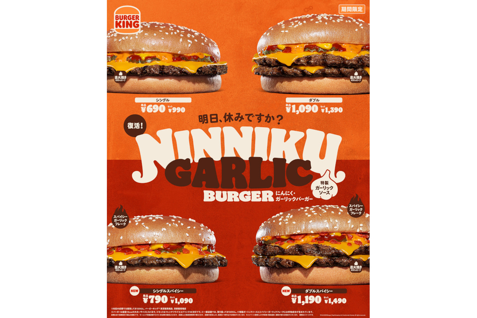 バーガーキング、ガツンとくる旨さの「にんにく・ガーリックバーガー」「ダブルにんにく・ガーリックバーガー」発売
