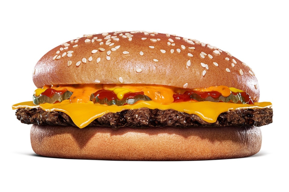 ビーフパティ2枚に、コクのあるチェダーチーズを4枚、ピクルスを重ね、ケチャップとマスタード、さらにガーリックペースト、フライドガーリック、ガーリックパウダーの3タイプのにんにくに、チリペッパーとブラックペッパーを効かせた、ガツンとくる旨さの「特製ガーリックソース」で仕上げたボリューム満点の本格チーズバーガー。