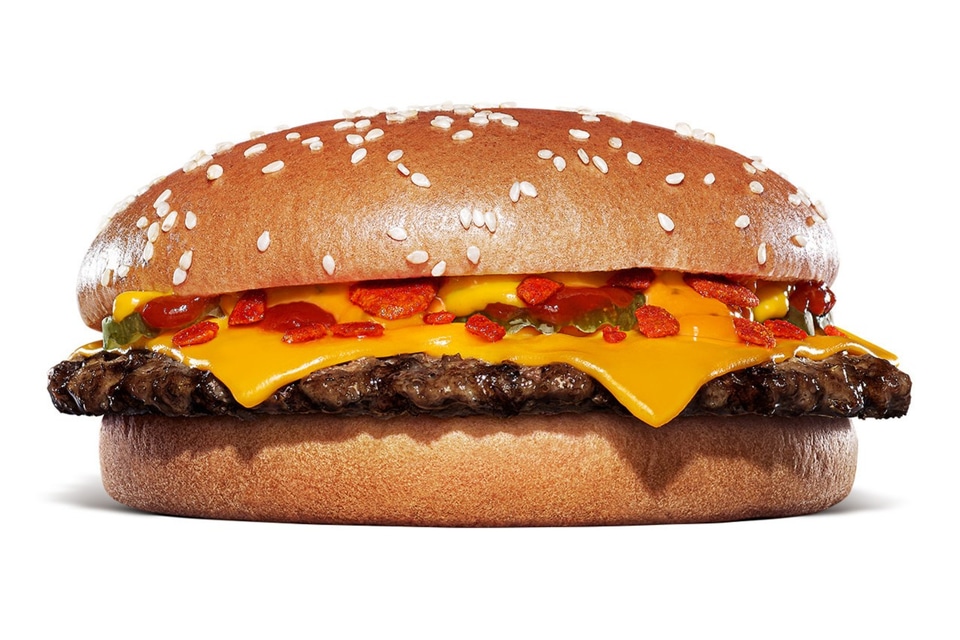 にんにく・ガーリックバーガーに、クセになる辛さと旨みが特徴の「スパイシーガーリックフレーク」を加えた本格チーズバーガーとなっている。