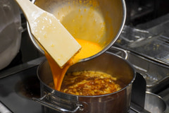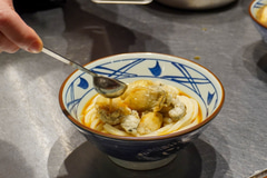 提供されたうどんを持ち上げると、ふわふわとした玉子あんかけがうどんによく絡んでいる。うどんと一緒に牡蠣を噛むと、ジュワっと濃厚な味わいが楽しめ、また玉子のまろやかさと牡蠣の旨みの一体感も感じられた。