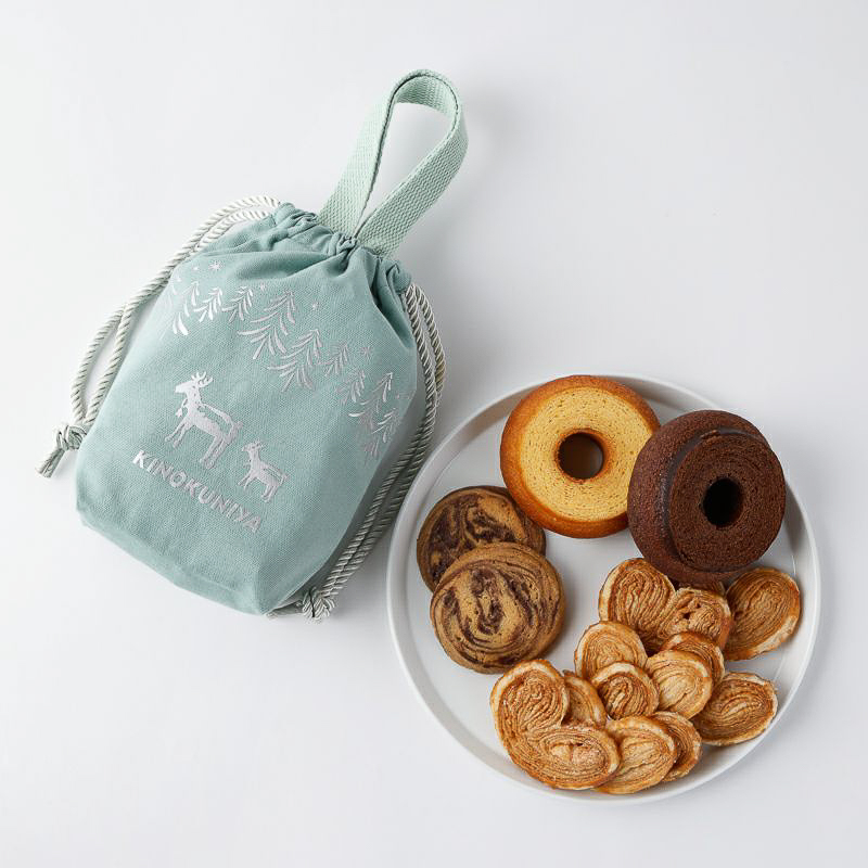 内容: バウムクーヘン(プレーン)、バウムクーヘン(チョコ)、リュネット 7枚入り、アイスボックスクッキー 2枚入り、ウィンタースイーツバッグ
