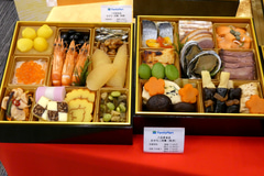 掛谷氏は、数あるラインアップの中からイチオシの商品として、八百彦本店監修の三段重(和洋中38品目、4人向け、3万2184円~)、二段重(和洋30品目、3人向け、1万8360円~)、一段重(和風20品目、2人向け、1万778円~)を紹介。贅沢さを追求した冷蔵タイプのおせちになっており、二段重については昨年から1000円の値下げ、一段重も品目数を維持しながら価格を据え置くことで贅沢さとコスパの両立を図っている。