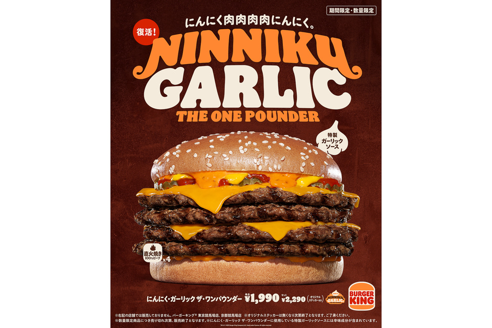 バーガーキング、総重量約525gの「にんにく・ガーリック ザ・ワンパウンダー」復活販売!