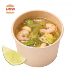 「トリコスープ」は、メキシコの家庭の味「ポソレ」をヒントに異国情緒のある味わいに。ベースにはビーフコンソメを使用し、えび・レタス・アボカド・大豆と一緒に煮込み、5種類(ローリエ・パセリ・オレガノ・バジル・タイム)のハーブを効かせた商品。そのままはもちろん、ライムを絞るとさっぱりとした酸味が加わり、ハンバーガーやポテトの合間にぴったりの口直しとしても楽しめるという。