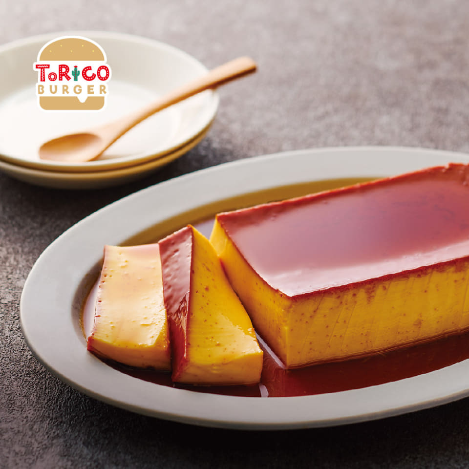 メキシコでポピュラーなデザート「フラン」。硬めのプリンのような食感で、砂糖の代わりに練乳を使用していることによる濃厚で贅沢な味わいが特長。「グランデフラン」は通常の10倍サイズ。