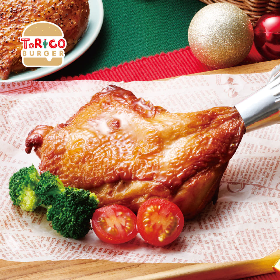 オリジナルのしょうゆベースのたれに漬け込み、ほんのり甘い味付けに仕上げた和風味の骨付きボリュームチキン。
