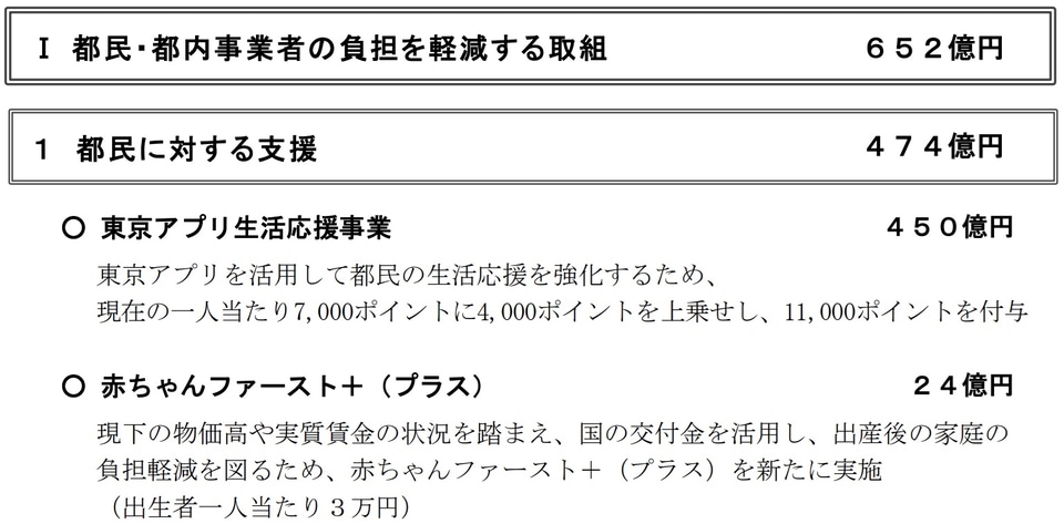 「物価高騰の影響が続くなか、都民の負担軽減を図る」ために、4000円分をプラスして「1万1000円分」のポイントを付与。実施時期については、「12月15日から都民の協力を得ながら最終的な検証を行ない、その結果を踏まえて速やかに実施。実施時期など詳細が決まったら周知する」としている。