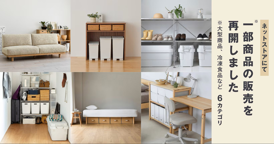 良品計画は公式ECサイト「無印良品ネットストア」において一部商品の受注と出荷業務を再開したことを発表した。