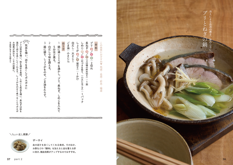 さらに、おすすめのレシピは「ちょい足し薬膳」トッピングも加えており、体調に合わせて食材をちょこっと足すだけで効能をプラスでき、味変も楽しめる。また、巻末には24点の食材の薬膳的効能や旬が分かる「鍋とスープの食材帖」も収録。寒い季節にほっこりあたたまって、すこやかに過ごしたい人にうれしい一冊になっている。