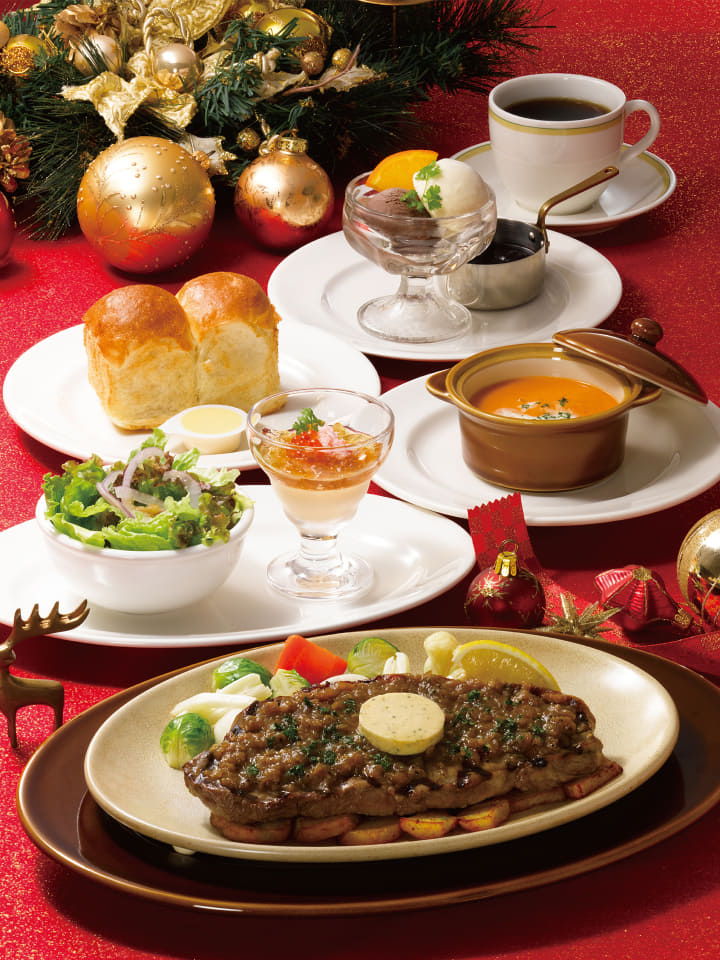 また、12月17日~25日には、メイン「225gアンガスサーロインステーキ~国産玉ねぎのペッパーソース~」にクリスマス限定デザートなどが付いた「クリスマススペシャルセット」を提供する。