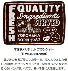 すき家オリジナルのブランケットやスープマグ、木製スプーンなどがセットになった福袋で、公式通販サイト版は4000円分のクーポンが付いて価格は4000円、店舗販売版は3500円分のクーポンが付いて価格は3500円。