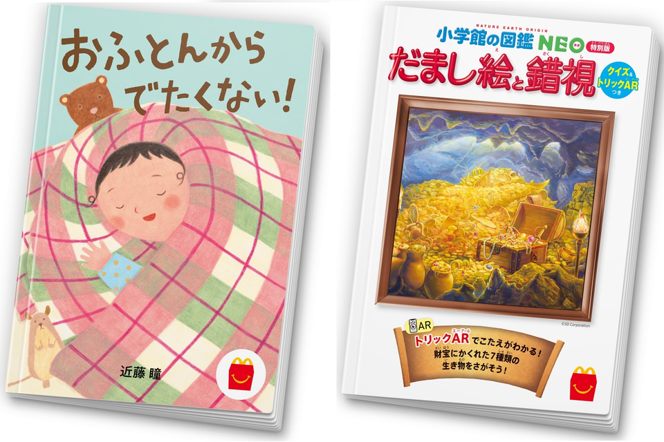 マクドナルド、ハッピーセット「絵本:おふとんからでたくない!」「ミニ図鑑:小学館の図鑑NEO 特別版 だまし絵と錯視」を12月12日発売