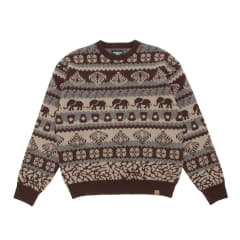 ウール100%のジャガードクルーニット、民族衣装から着想を得た柄のクレイジーパターンフードネルブルゾン、総柄プリントフリースジップブルゾン、アニマルプリントTシャツの全4型はいずれもメリハリのあるシルエットで、肩幅と身幅にはゆとりをもたせ、ネックは体に沿うように設計している。ユニセックスで着用できるようXS~XLの5サイズを展開する。