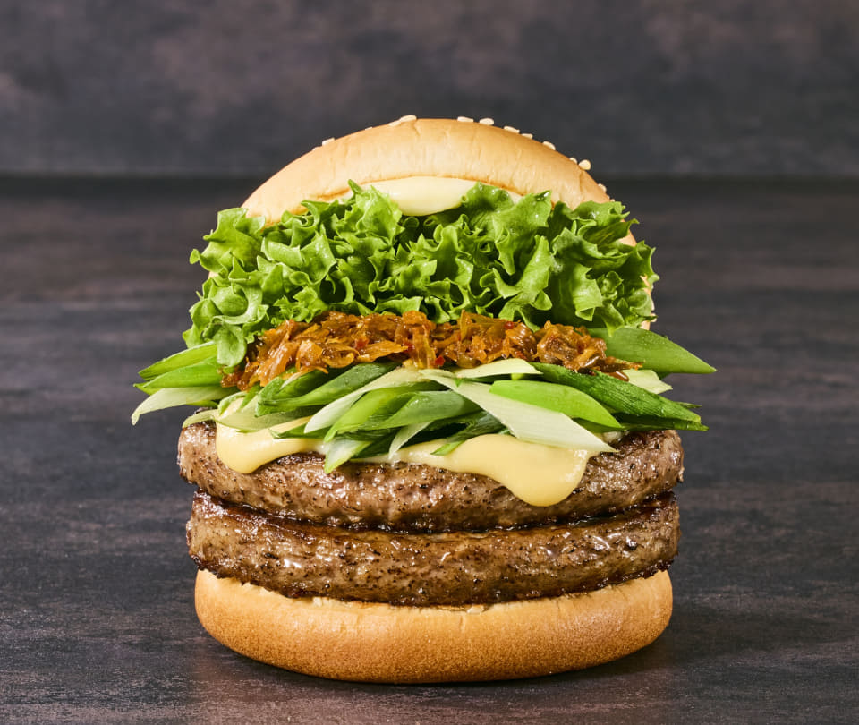 黒毛和牛を100%使用したこだわりのパティでは、赤身と脂身を絶妙なバランスで配合。その上に乗った冬に旬を迎える「九条ネギ」がシャキッとした食感と甘みを引き出している。また、ソースには「西京味噌ソース」を使用しており、まろやかな口当たりが黒毛和牛の美味しさを引き立てているという。