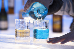 氷のスイーツショップでは、氷の器にチョコレートを流し込んで、寒さで固まる様子を目の前で体験できる「オリジナルチョコレート作り」や、アイスバーに温かいホワイトチョコレートをつけて作る「ホワイトショコラアイスバー」を提供する。