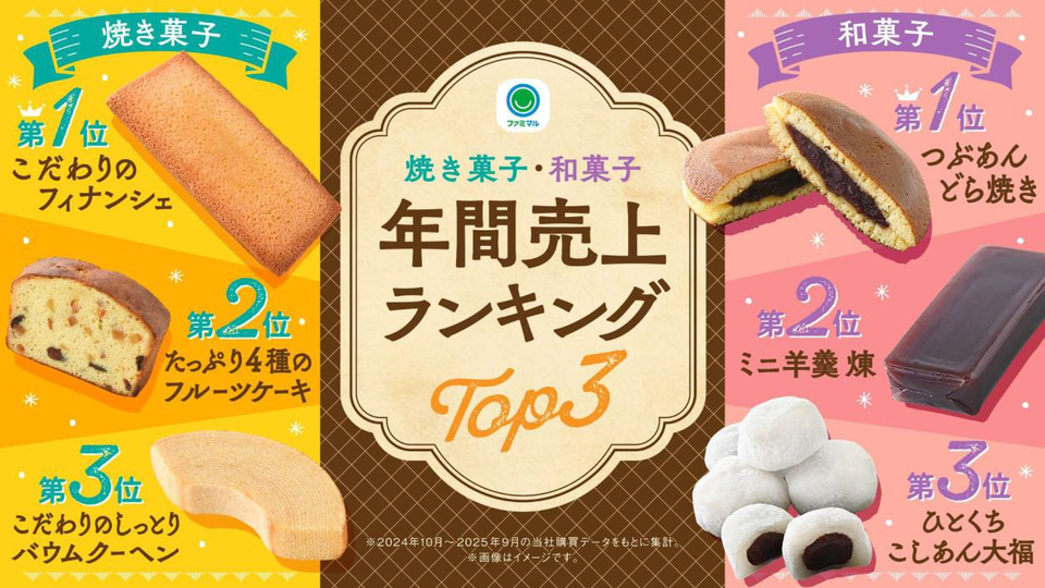 ファミリーマートは、焼き菓子や和菓子の年間ベストセラー(2024年10月~2025年9月)を発表した。