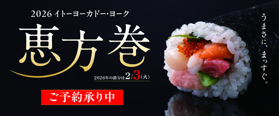イトーヨーカ堂は「2026年恵方巻」の予約を、全国のイトーヨーカドーとヨークの計197店舗と、イトーヨーカドー店頭お渡し商品ご予約サイトで開始した。予約の受付は12月15日~1月26日、受渡は1月31日~2月3日となる。