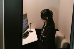 高輪の6階の店舗で導入していた来店客の動きを検知してサイネージの内容を変化させる仕組みについては、社員専用の大阪の店舗では省略。一方で高輪の6階の店舗内にリモート接客ブースが設置されていたが、大阪では店舗近くの休憩スペースに設置することで社員の利便性を高めている。