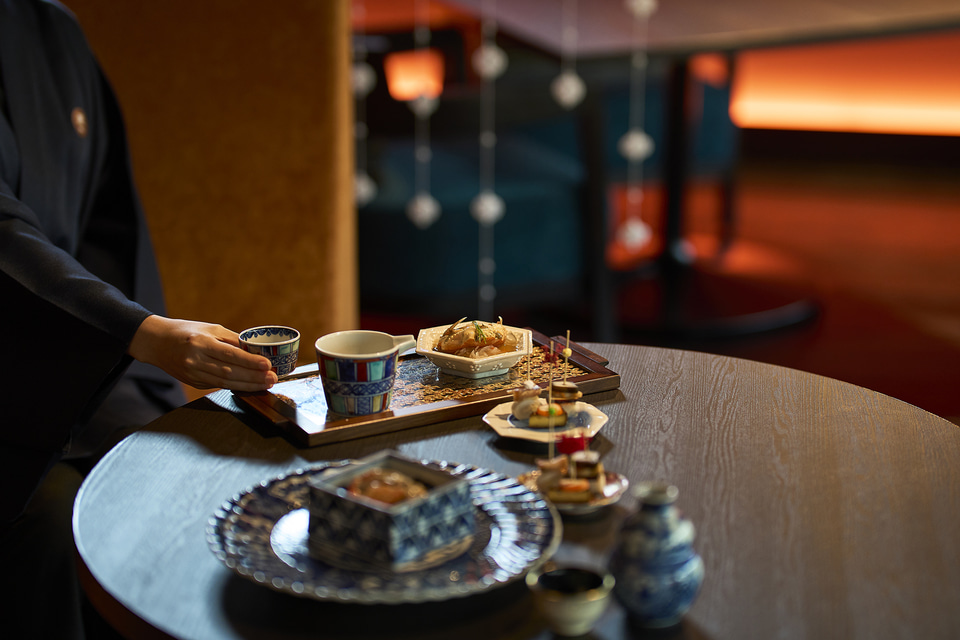 星野リゾートの「界 加賀」九谷焼の器がズラリと並ぶ贅沢ラウンジで冬の逸品「蟹面」を楽しめる特別メニューを提供