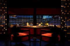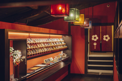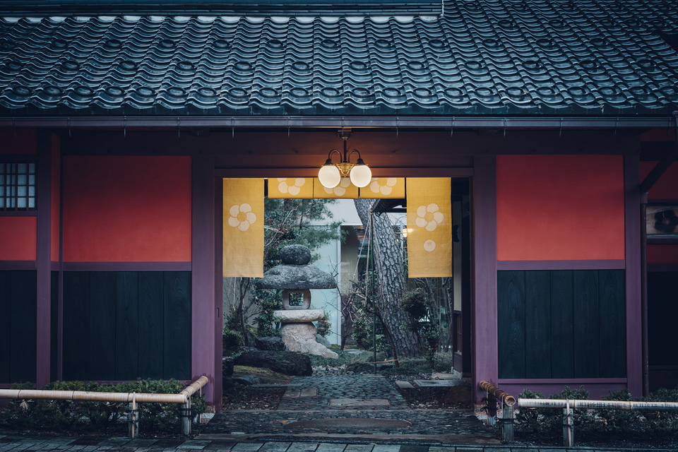 「べんがらラウンジ」は、国の有形文化財にも登録されている紅殻色が特徴の伝統建築棟にあり、歴史と美を感じさせる空間。この特別な場所で、加賀の冬の美食である“蟹”と、この地に根付く伝統工芸である“九谷焼”との融合を通じて、冬の旅がより深く記憶に残るひとときを提供する。