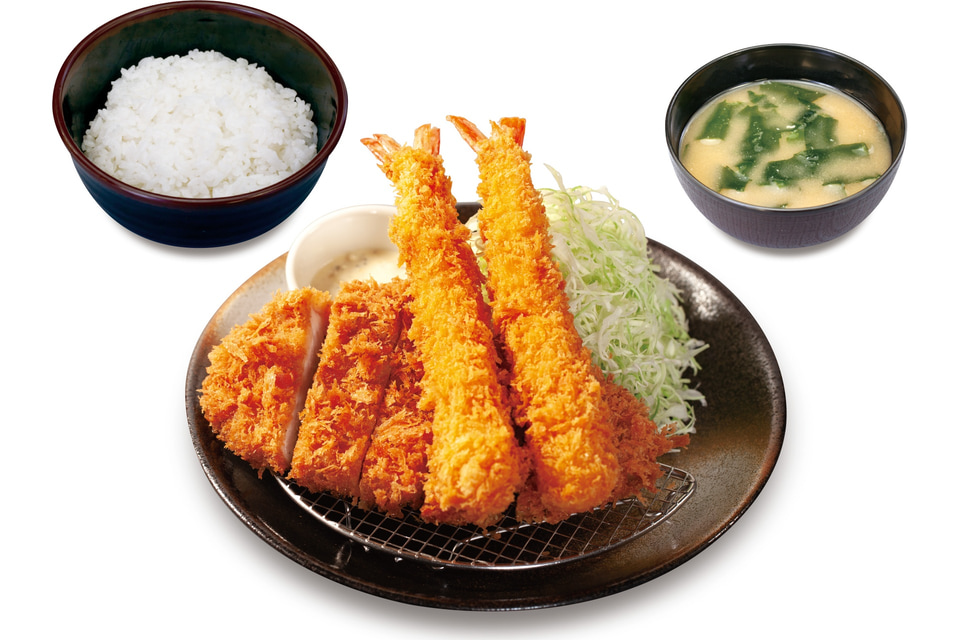 ・「ロースかつ&有頭大海老フライ(1尾)定食」(970円)