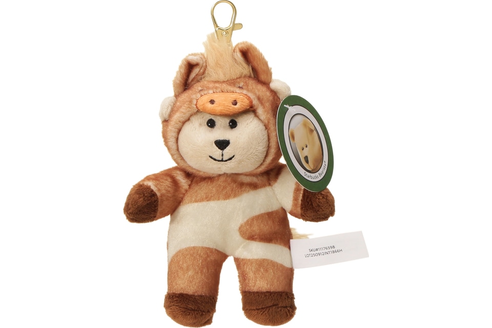 2026年の干支であるうまに扮したベアリスタ。たてがみとしっぽに毛足の長い素材を使ったかわいらしいデザインで、クリップパーツが付属しているのでバッグなどに取り付けることができる。