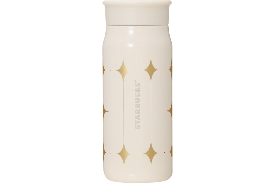 持ち運びやすいコンパクトなステンレスミニボトル。やわらかなアイボリーのボディにゴールドと赤色のアクセントがスタイリッシュな印象になっている。背面にはスターバックスロゴをレーザー加工で表現した。