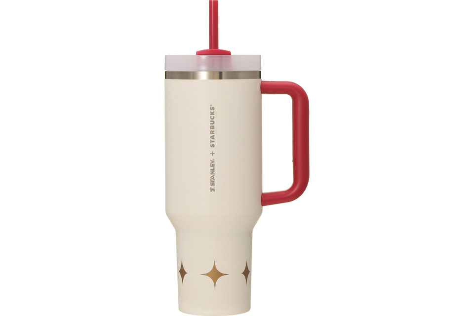 リッドのカバーパーツを回転させることで「直接飲む」「ストローをさして飲む」「飲み口を閉じる」3通りの使い方ができるステンレスタンブラー。やわらかなアイボリーに、ハンドルやストロー部分の赤色がアクセントになり、ダイヤマークもきらりと映えるデザインになっている。