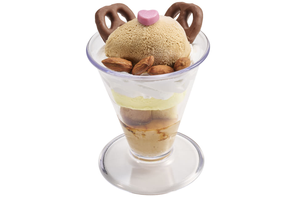 コクのあるミルキーなキャラメル味のアイスとムースに、香ばしいナッツをあしらっているのが特徴。ムースやスポンジ、バニラアイスなどが重なった上にのせられたキャラメルアイスには、アーモンドなどのトッピングが施され、まるでトナカイのような見た目に仕上げられているという。